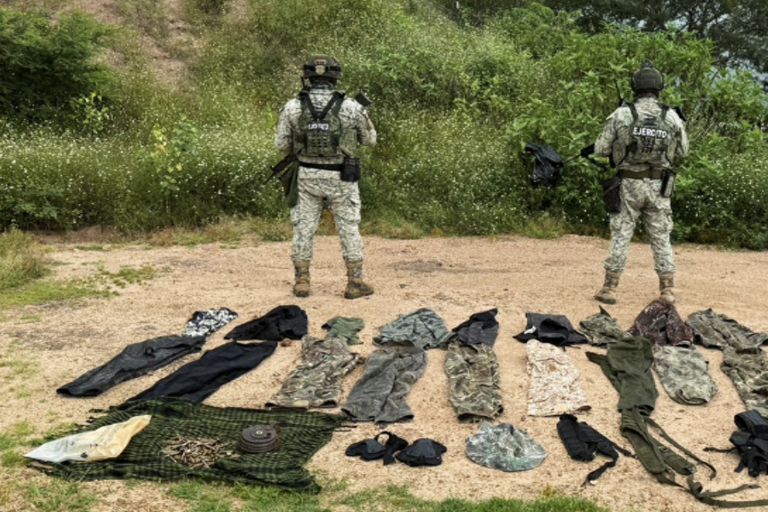 Asimismo, durante patrullajes de vigilancia en Concordia, personal militar aseguró tres armas largas, ocho cargadores, 587 cartuchos, un chaleco y dos placas balísticas.