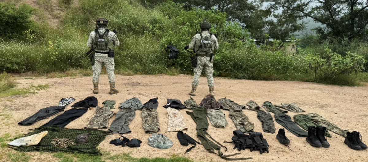 CULIACÁN. _ Elementos del Ejército Mexicano realizaron una serie de operativos en los municipios de Badiraguato, Elota y Concordia, que derivaron en el aseguramiento de campamentos irregulares presuntamente utilizados por grupos delictivos, así como de armamento, municiones, droga y equipo táctico.