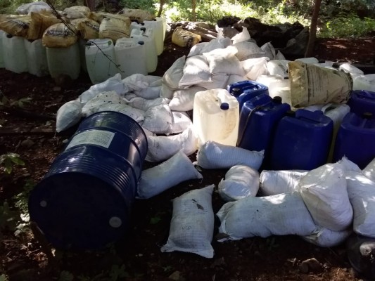 COSALÁ._ Depósitos de sustancias químicas y un posible laboratorio para la elaboración de drogas sintéticas, fue lo asegurado por elementos del Ejército Mexicano, en las inmediaciones del poblado Santa Anita en la zona serrana de este municipio.