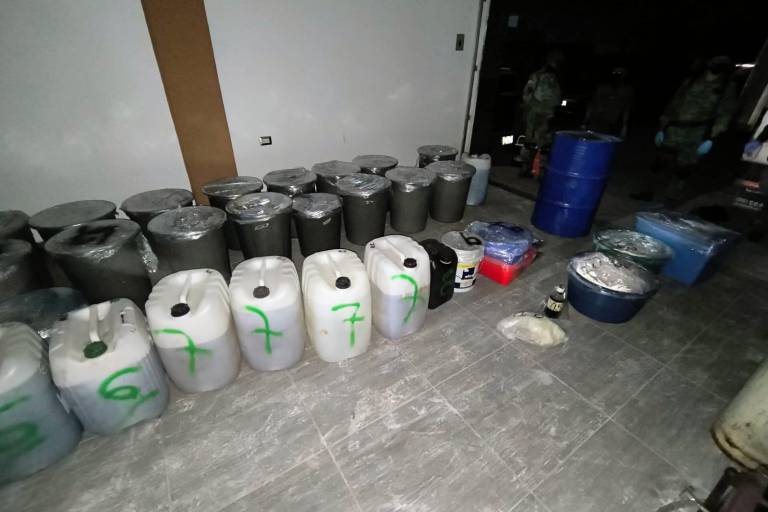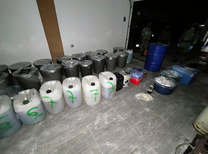 En total se decomisaron 98 kilogramos de la droga conocida como mentafetamina, además de mil 260 litros de la misma sustancia en líquido.