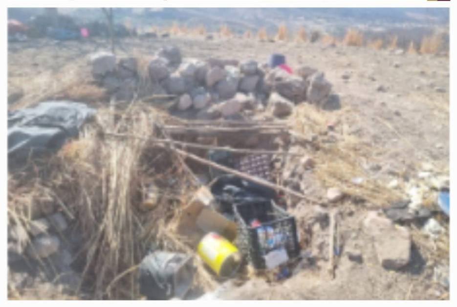 Por su parte, el otro contaba con un área de 10 x 20 metros, para aproximadamente siete personas, con cuatro parapetos de piedra, también acondicionado con plástico y cobijas.