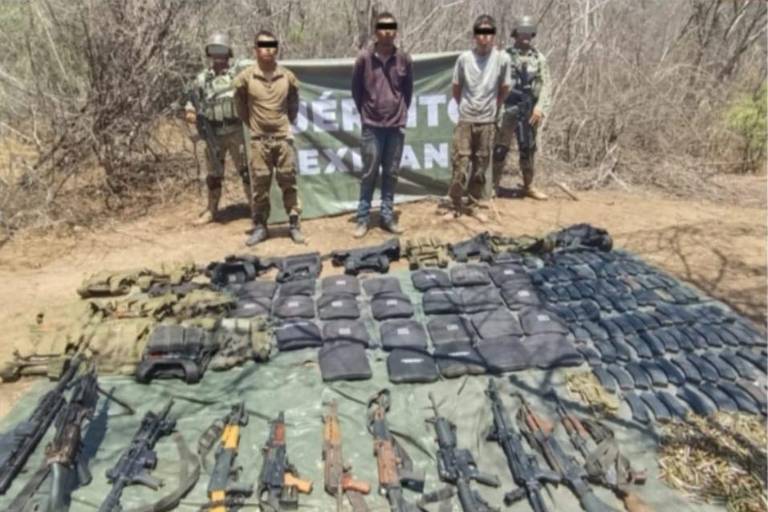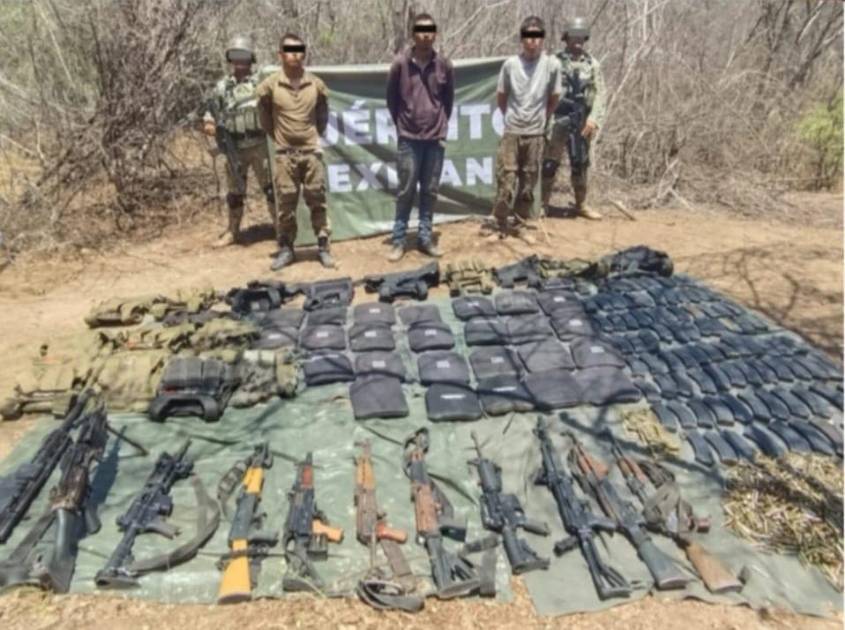 CULIACÁN._ Tres civiles fueron detenidos y un arsenal fue asegurado por elementos del Ejército Mexicano durante un operativo en el poblado Paso del Norte, en Culiacán.