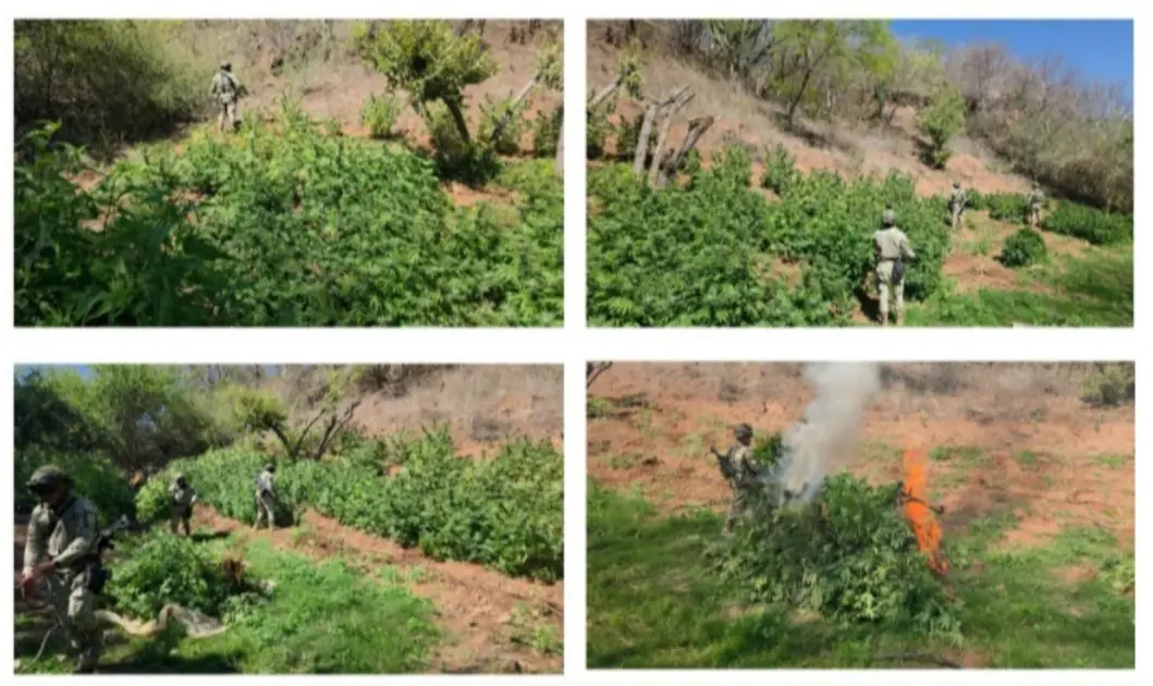 Los terrenos albergaban miles de plantas y fueron asegurados y erradicados conforme a los protocolos. Cada sembradío tenía en promedio 10 plantas de marihuana por metro cuadrado