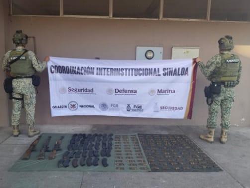 Ejército Mexicano asegura campamento en Elota con armas largas y más de mil cartuchos