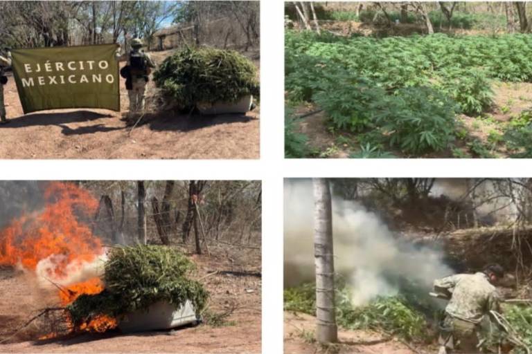 COSALÁ. _ Personal del Ejército Mexicano localizó y destruyó tres plantíos de marihuana en las inmediaciones del poblado El Cajón, perteneciente al municipio de Cosalá.