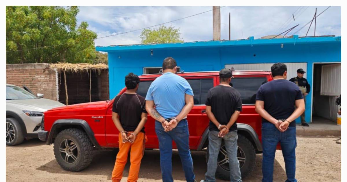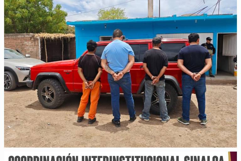 ANGOSTURA._ Elementos del Ejército Mexicano y de la Fiscalía General de la República (FGR), detuvieron a cuatro civiles y aseguraron armas, un vehículo y demás objetos de delito en Angostura.