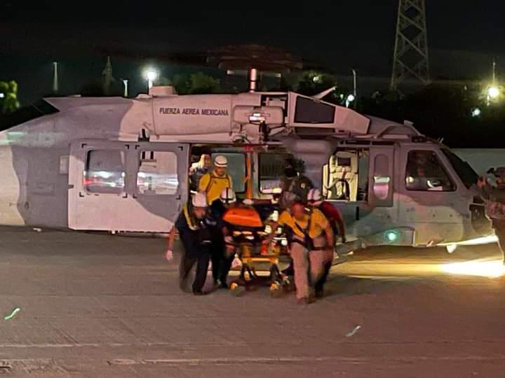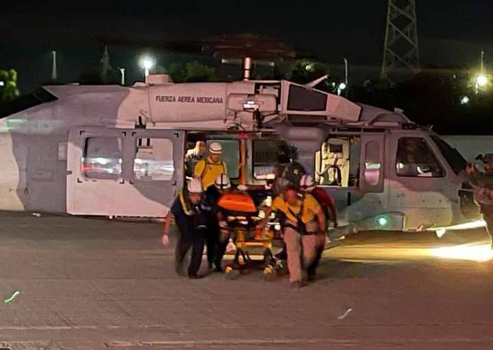 El lesionado presentó traumatismo craneoencefálico moderado y posibles fracturas en cadera y húmero del bazo izquierdo, y fue trasladado a bordo del helicóptero de la Marina hasta las instalaciones del Centro de Convenciones, donde fue recibido por paramédicos de Protección Civil Municipal, quienes lo trasladaron al Hospital General para su atención médica.