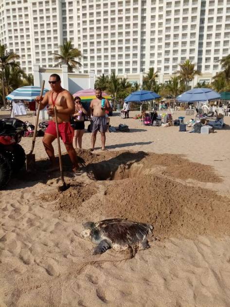 En ambos casos, los salvavidas procedieron a enterrar las tortugas.