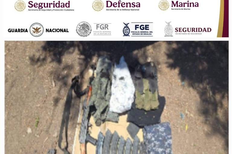 En Navolato, Ejército Mexicano asegura armamentos, municiones y equipo táctico