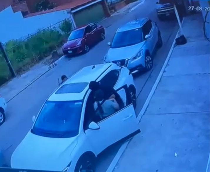 En el video se observa cómo la mujer abría una de las puertas traseras para recibir a un niño que acababa de llegar al domicilio. En ese momento, el agresor se aproximó por el lado del conductor y, con un arma de fuego, obligó a la mujer a entregar las llaves del automóvil.