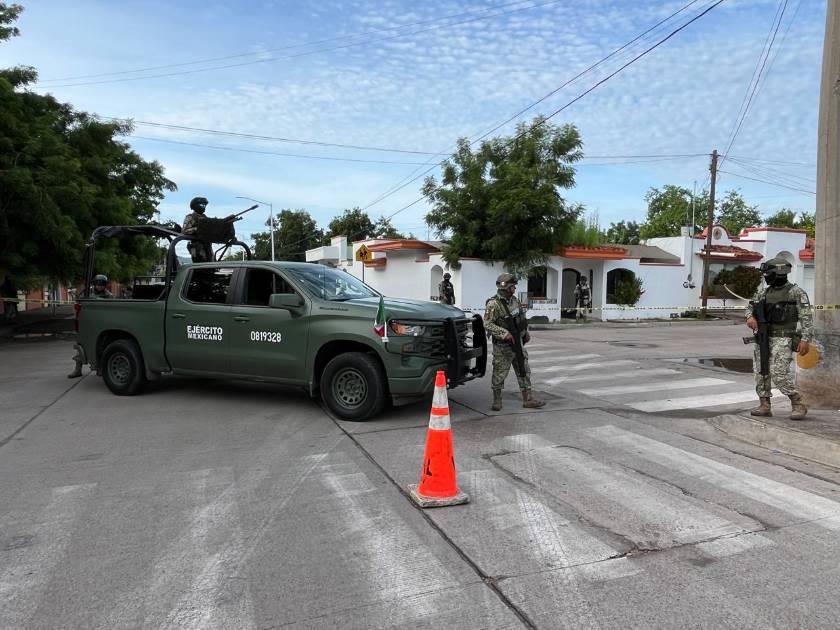 CULIACÁN. _ Un enfrentamiento entre grupos armados del crimen organizado derivó en el aseguramiento de un domicilio y armamento frente a la escuela secundaria Antonio Nakayama Arce, en la colonia Emiliano Zapata, al oriente de Culiacán.