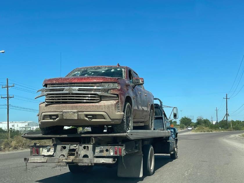 Tras el tiroteo, los efectivos detuvieron a dos de los agresores y aseguraron una camioneta Chevrolet Silverado, modelo 2025 de color rojo, el cual quedó con múltiples daños e impactos de bala en la carrocería.