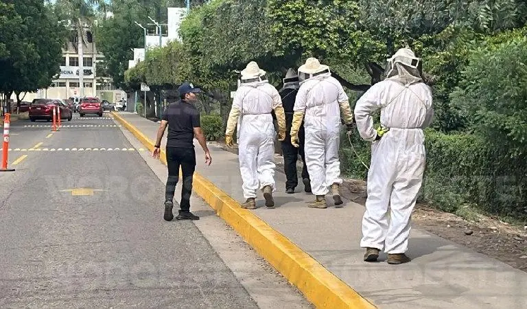 En las inmediaciones, en un área de terracería aledaña al campus, se desplegaron elementos de Protección Civil con trajes protectores en busca del enjambre, sin lograr localizarlo.