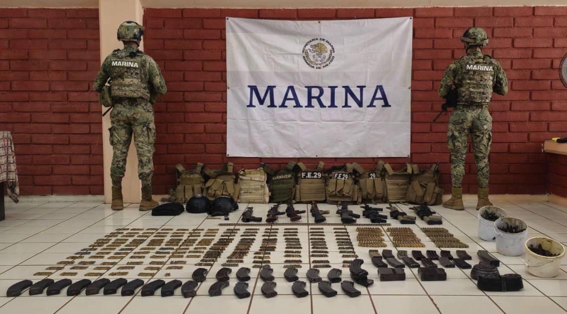 Un total de ocho armas largas, un arma corta, más de mil 700 cartuchos útiles de diversos calibres y 42 cargadores metálicos, así como dos vehículos y equipo táctico diverso, fue lo que aseguró la Marina Armada de México en el poblado Villa Benito Juárez, en el municipio de Navolato.