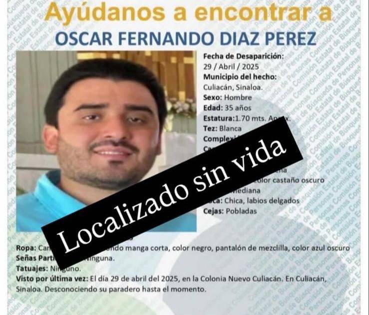 La víctima fue identificada como Óscar Fernando “N”, de 35 años, quien había sido reportado como desaparecido desde el pasado martes 29 de abril, mismo día en que se le vio por última vez en la colonia Nuevo Culiacán.