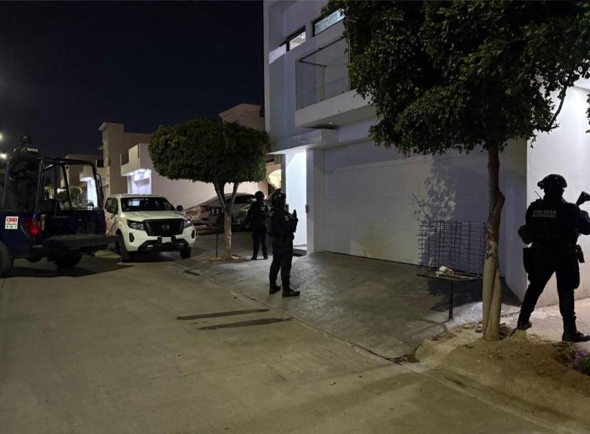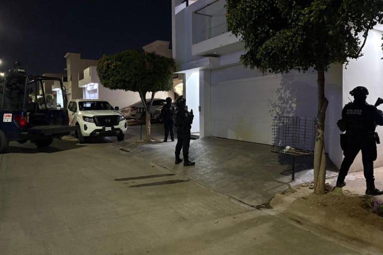 Integrantes del Grupo de Operaciones Especiales Sinaloa de la Policía Estatal aseguraron una casa con un vehículo blindado y armamento en su interior, en el fraccionamiento Portalegre Residencial, en Culiacán.