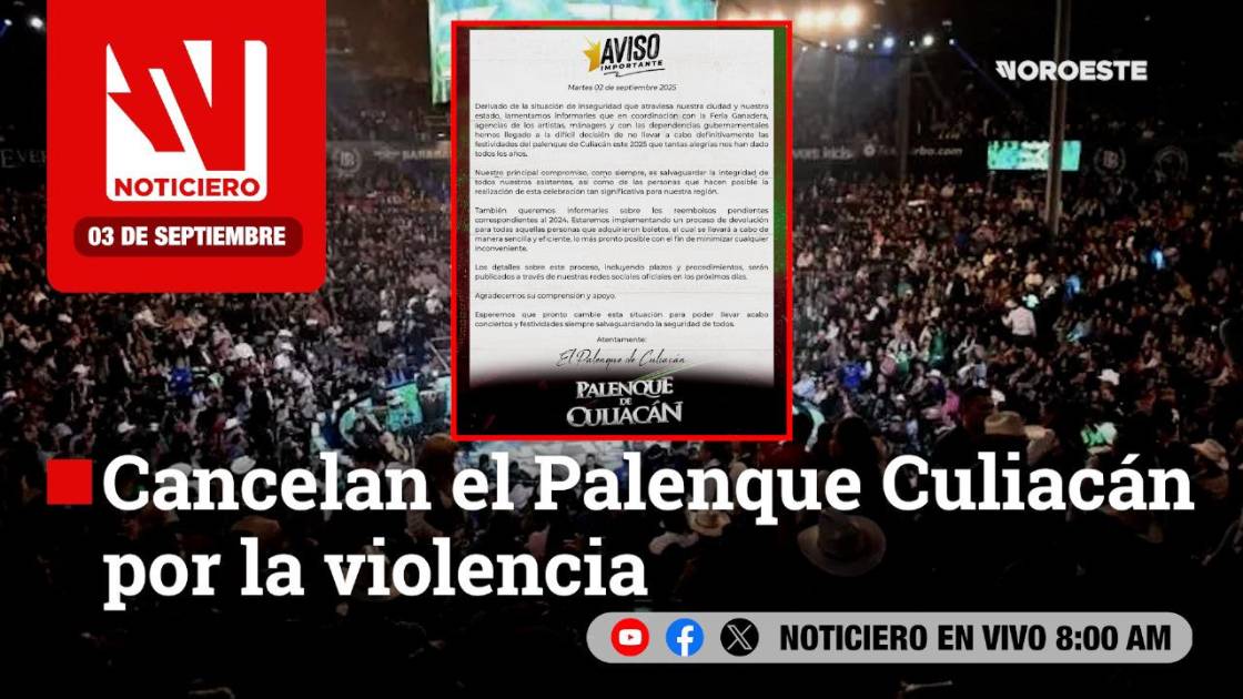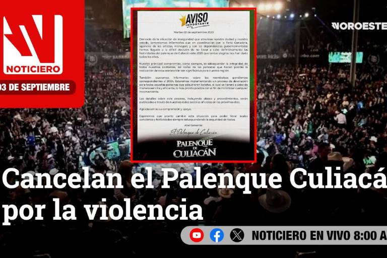 Este miércoles, en Noticiero Noroeste: Cancelan el Palenque Culiacán por la violencia
