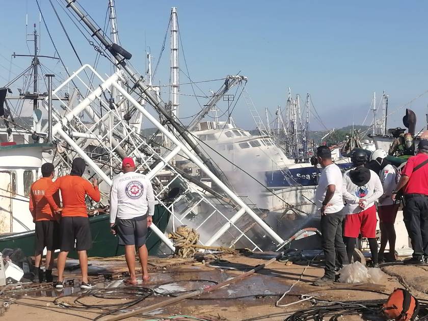 Explosión de tanque ocasiona incendio y hundimiento de un barco camaronero
