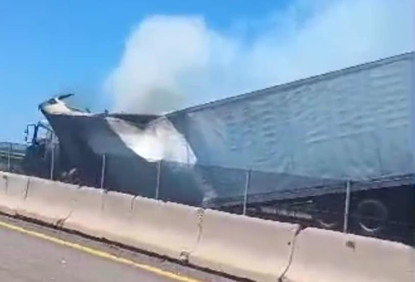 Falla en frenos provoca incendio de tráiler en la autopista Mazatlán-Culiacán