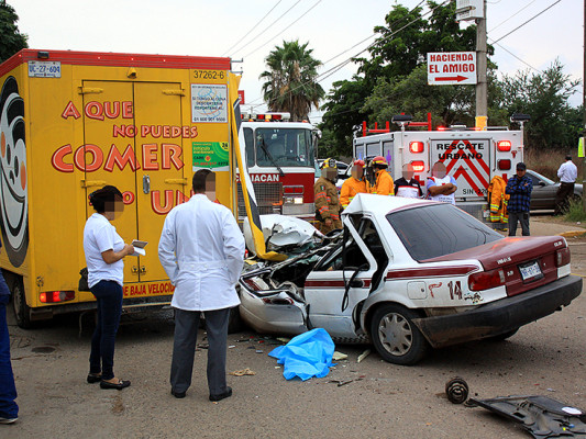 CULIACÁN._ Un taxista falleció la mañana de ayer al quedar prensado en su vehículo, en el que se impactó por alcance contra un camión repartidor de botanas que circulaba por la Avenida Álvaro Obregón, a la altura de Los Mezcales.