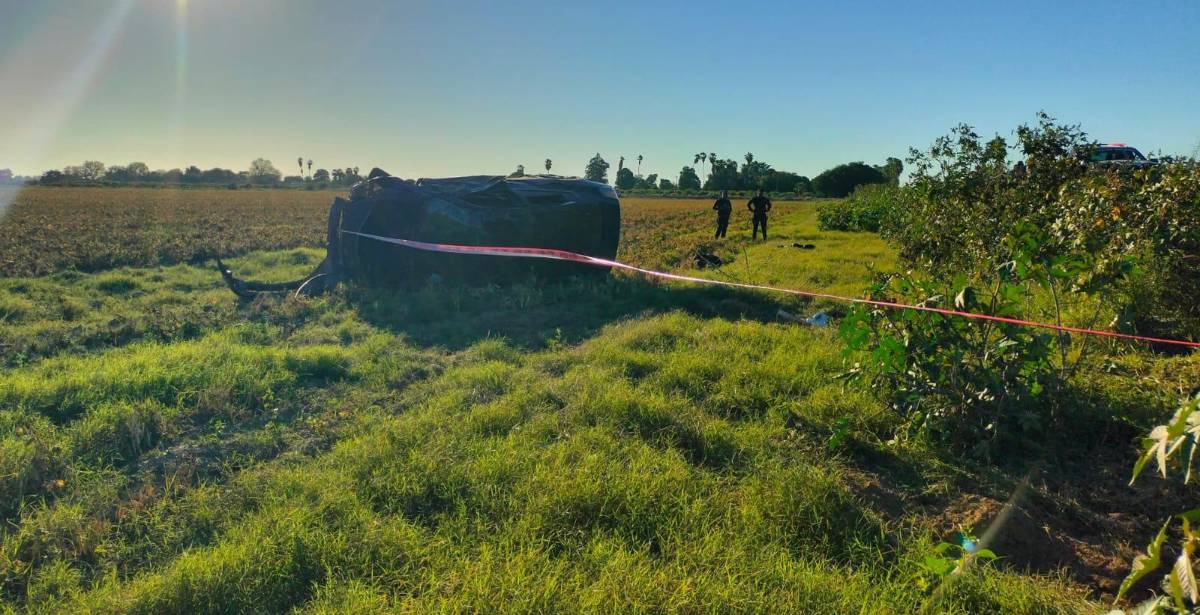 Debido a la velocidad de ambos vehículos, el impacto fue brutal e inevitable. El conductor del sedán intentó esquivarlos sin éxito, lo que provocó que perdiera el control y terminara volcado sobre su costado entre unas tierras de cultivo.