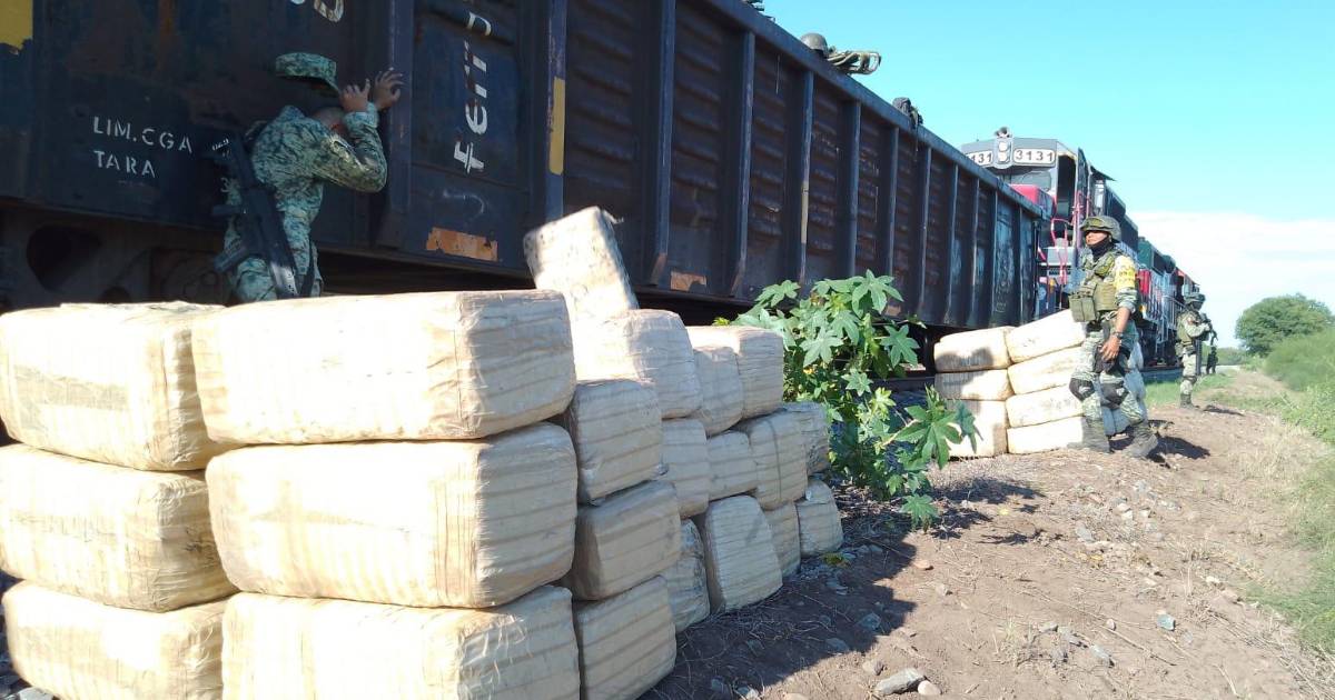 Un total de 1.5 toneladas de mariguana fueron aseguradas en Estación Rosales en una revisión de la Sedena y la Guardia Nacional a los vagones del tren implementada en la mañana del lunes en Culiacán.