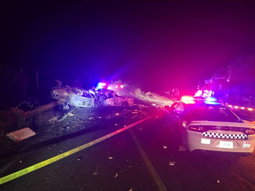 EL ROSARIO._ Dos conductores carbonizados al interior de sus unidades, un motociclista sin vida y dos motociclistas más heridos, dejó como saldo un aparatoso accidente sobre la carretera México 15, en la zona de curvas conocida como de Los Otates.