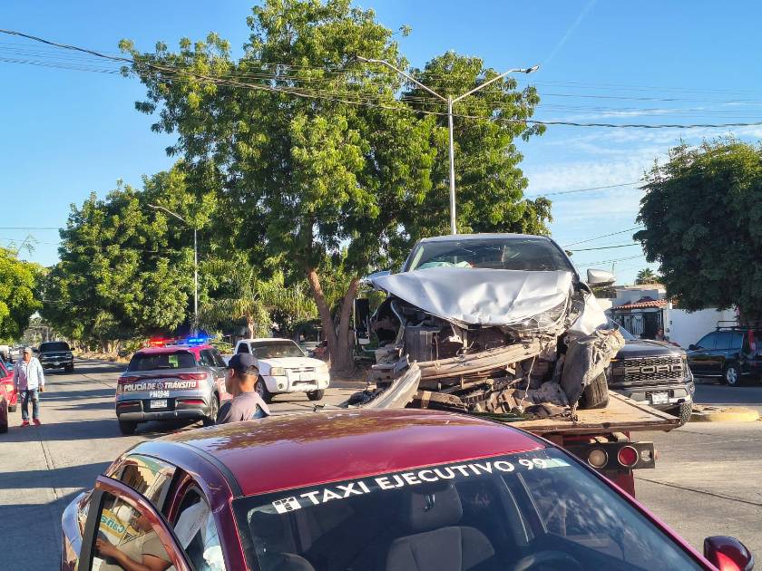 Las unidades involucradas son un taxi ejecutivo Chevrolet Aveo, color tinto y número económico 99, y un vehículo particular Toyota Yaris, también tinto y con placas de Sinaloa, conducido por un joven.