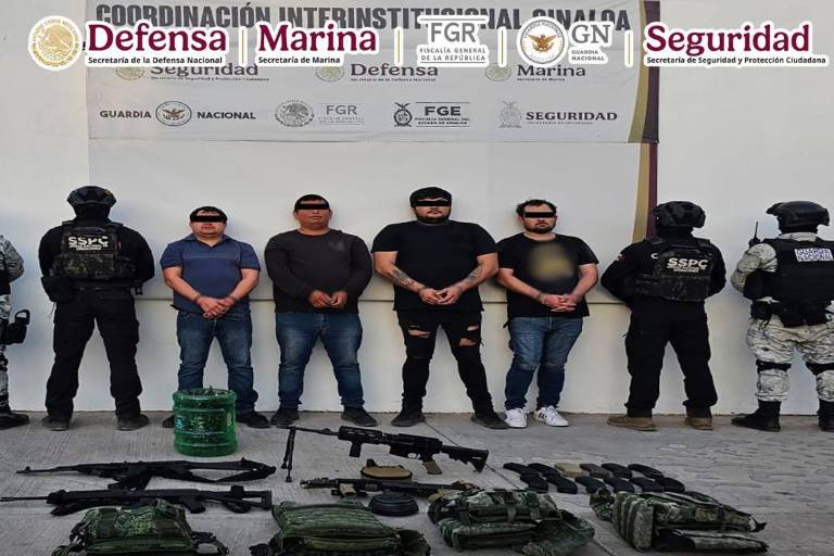 “En el estado de Sinaloa, elementos de la Secretaría de Seguridad y Protección Ciudadana (SSPC), Secretaría de la Defensa Nacional (Defensa), Secretaría de Marina (Semar), Fiscalía General de la República (FGR) y Guardia Nacional (GN), implementaron acciones operativas para preservar el Estado de derecho, que dieron como resultado la detención de cuatro personas que formaban parte de una célula delictiva vinculada con homicidios y venta de droga”, señala el comunicado.