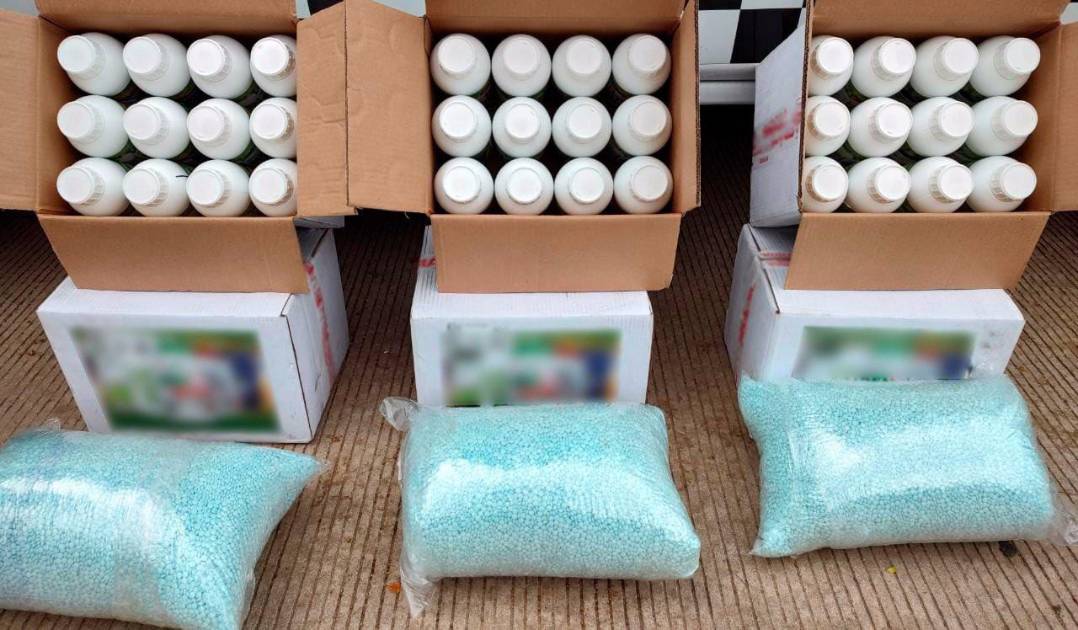Elementos de la Guardia Nacional aseguraron más de 600 mil pastillas de aparente fentanilo, ocultas en botellas de lo que supuestamente era proteína vegetal.