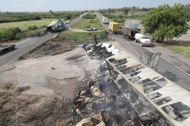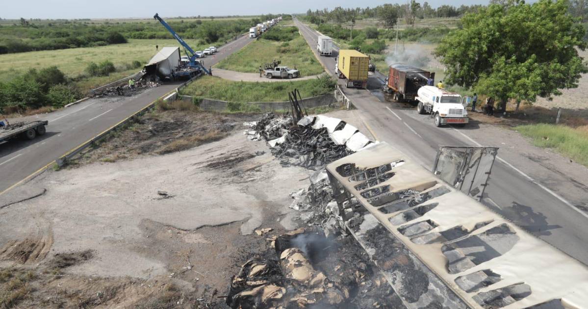 Durante las primeras horas del día se reportó el bloqueo de esta vialidad con al menos cinco tráileres, a la altura del municipio de Elota.
