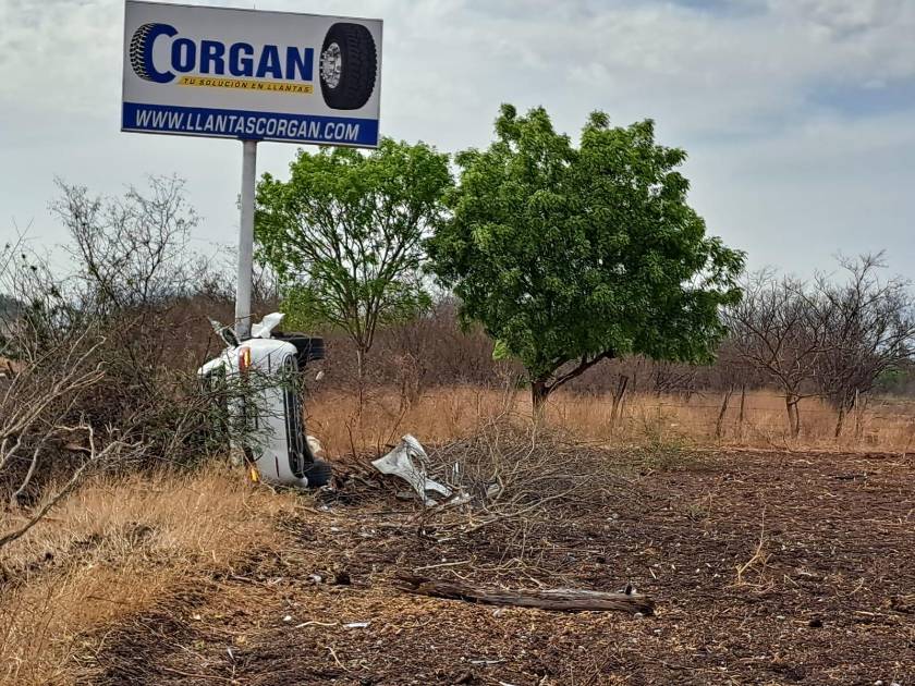 Hallan automóvil abandonado y volcado tras choque en carretera de Culiacán
