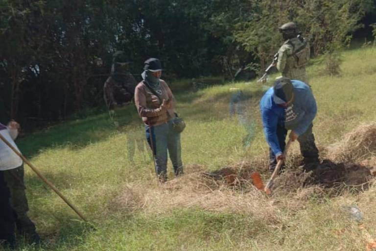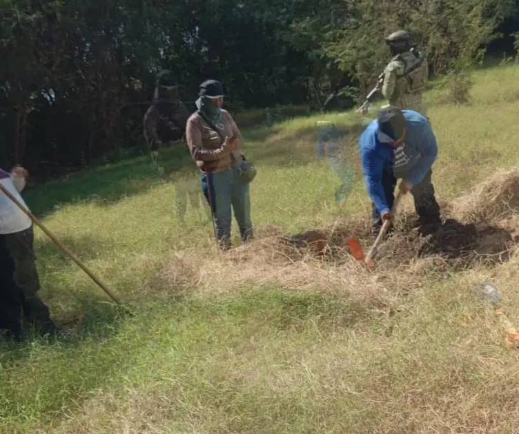 En tanto, integrantes del colectivo y elementos de la Policía de Investigación continuaron la inspección del predio para descartar la posible presencia de más víctimas.
