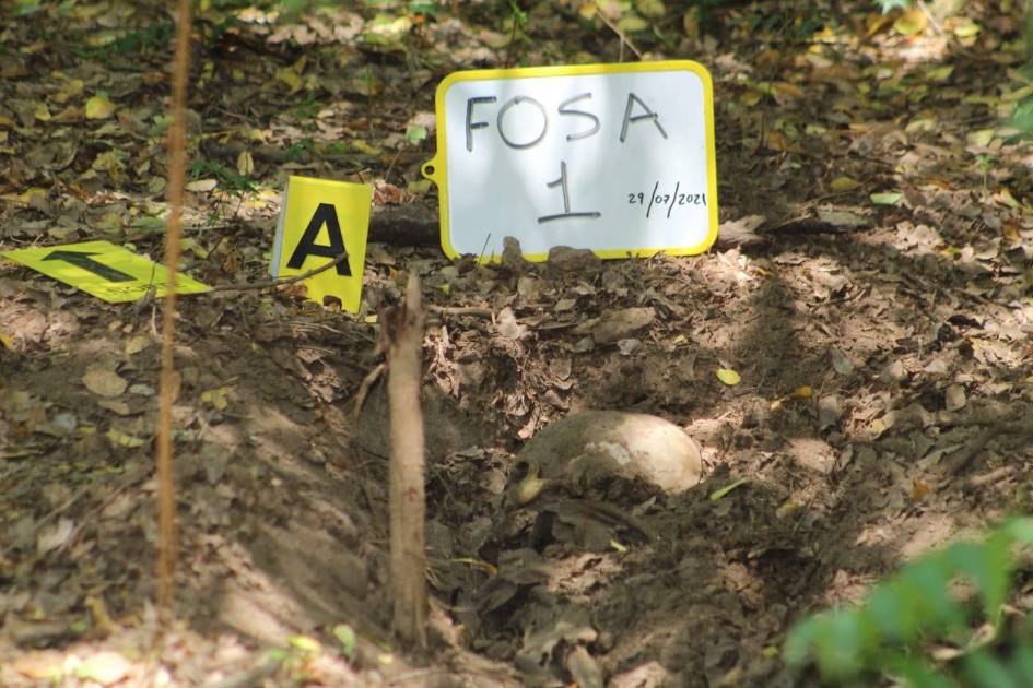 Las autoridades informaron que el reporte lo recibieron a las 12:30 horas, localizando los restos óseos humanos semienterrados en un terreno enmontado.