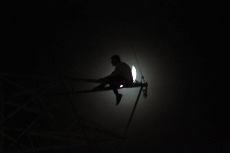 Alrededor de las 23:45 horas, se paró y bajó alrededor de dos metros de la torre, y unos 15 minutos después inició el descenso. Ya abajo fue llevado a valoración médica.