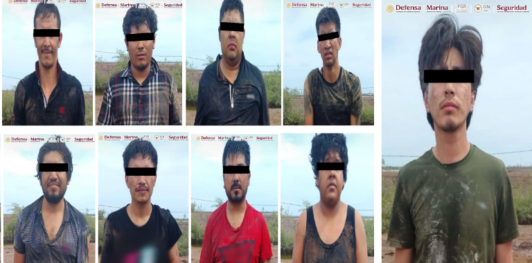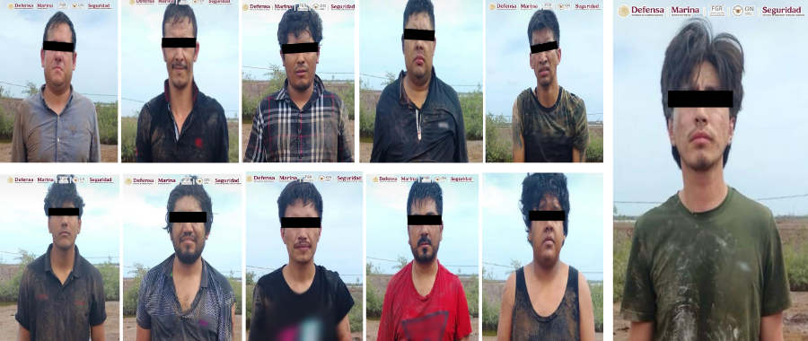 Como resultado, fueron detenidos 11 civiles identificados como: Juan Manuel “N”, de 38 años; Juan Francisco “N”, de 32 años; Erik “N”, de 32 años; José María “N”, de 31 años; Alán Abel “N”, de 29 años; Víctor Hugo “N”, de 28 años; Andy Erubiel “N”, de 27; Elián de Jesús “N”, de 25; Sergio Ramón “N”, de 23 años; José Carlos “N”, de 19, y José Luis “N”, de 18 años.