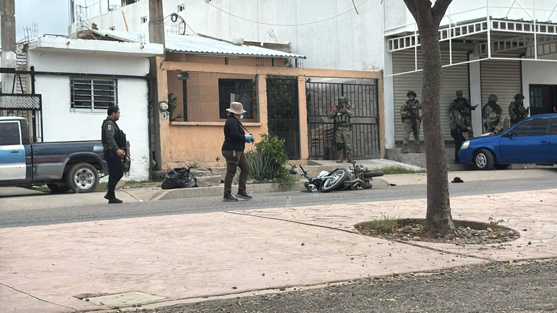 El homicidio se reportó alrededor de las 8:30 horas entre la calle Ernesto Damy y avenida Fernando Cuén. La víctima quedó recostada sobre el pavimento frente a su motocicleta, la cual quedó con daños tras la caída.