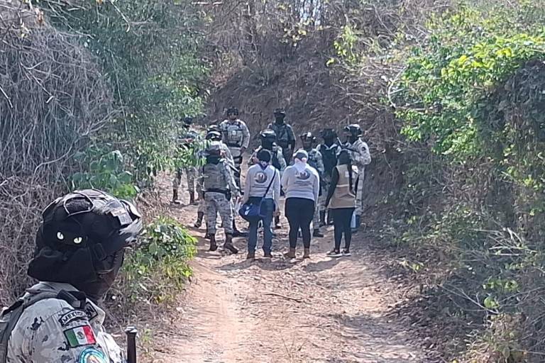 Integrantes de los colectivos de búsqueda Tesoros Perdidos, Hasta Encontrarlos y Por las Voces sin Justicia acudieron la tarde del viernes a la entrada a la brecha que conduce al predio donde se confirmó la existencia de una fosa clandestina, pero se quedaron frente al primer filtro de seguridad con elementos de la Guardia Nacional, instalado junto al panteón de la comunidad.