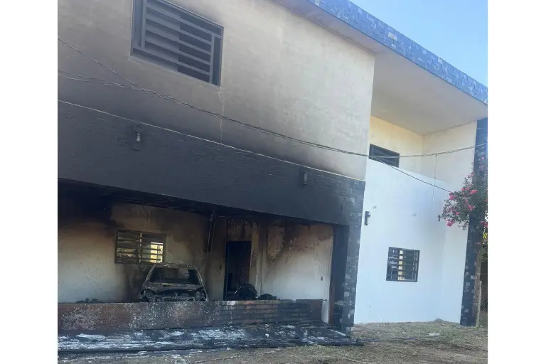 Tras el reporte de un fuerte estruendo por parte de vecinos, autoridades confirmaron que una casa de dos plantas color blanco presentaba rastros del incendio.