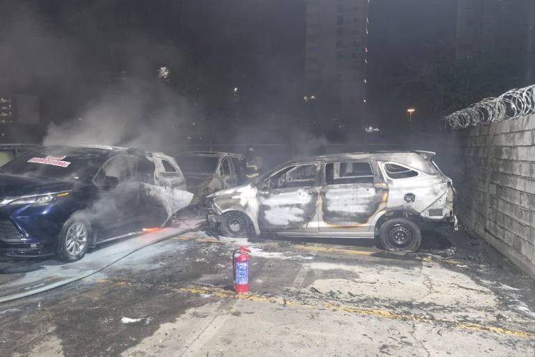 Elementos de Bomberos Mazatlán llegaron al lugar y lograron sofocar el fuego, aunque las llamas consumieron totalmente cinco vehículos y dos más resultaron con daños parciales.