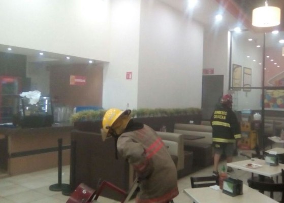Los Bomberos realizaron las maniobras correspondientes en el interior del área de cocina de la plaza comercial para controlar el fuego, por lo que se aprecia una gran cantidad de humo que sale del interior, pero no se reportan personas lesionadas.