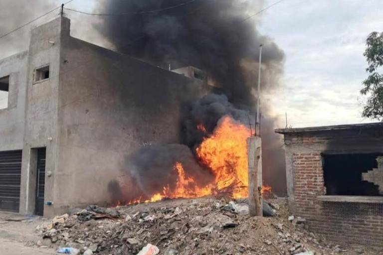 Tras el reporte oficial, una vecina alertó al número de emergencias 911 al percatarse de que el fuego cobró fuerza rápidamente. Las llamas, alimentadas por llantas y madera, superaron la segunda planta de la vivienda contigua.