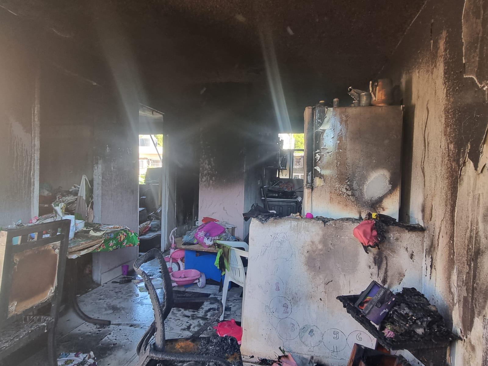 CULIACÁN._ Dos mayores de edad y tres niños de entre 2 y 7 años de edad resultaron intoxicados tras incendiarse su casa en la colonia Urbivilla del Prado, en Culiacán.