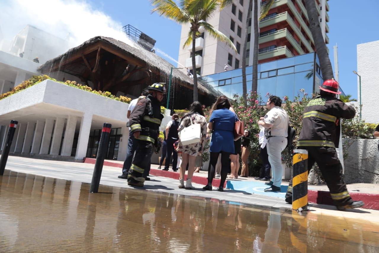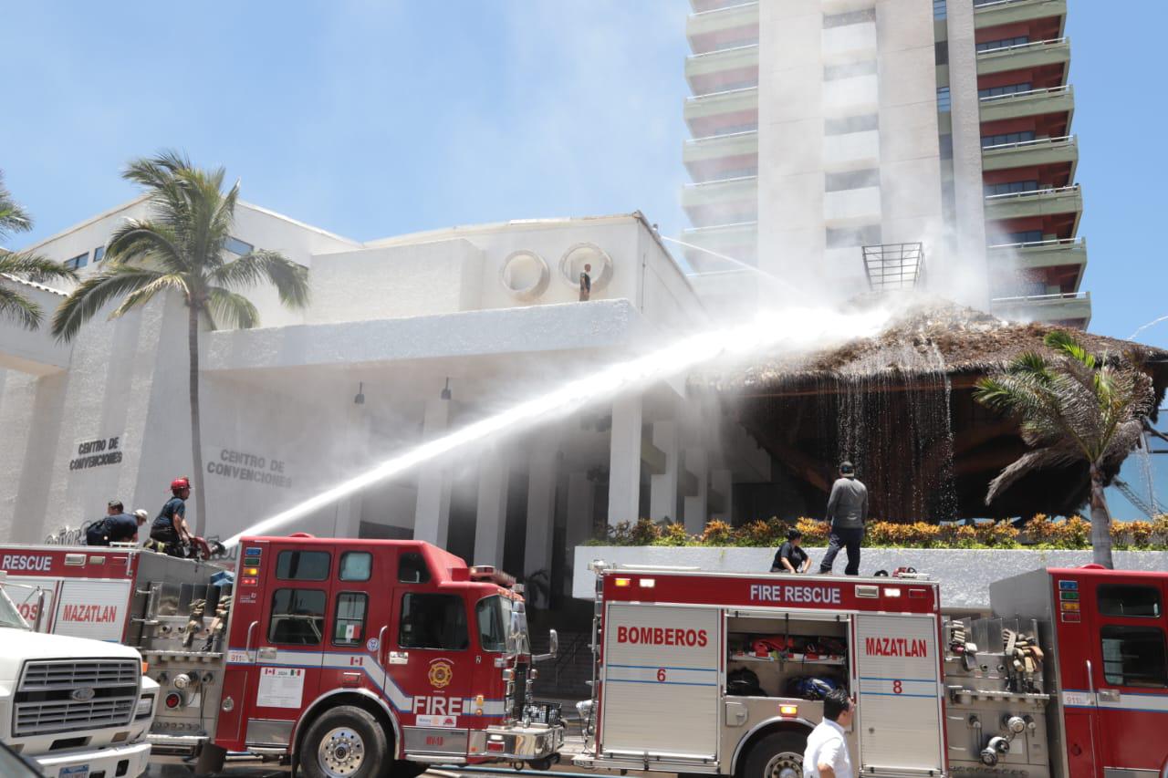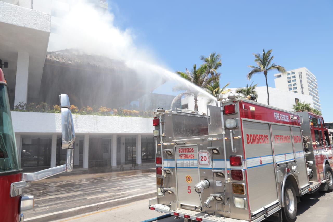 $!Incendio en palapa de hotel en Mazatlán moviliza a cuerpos de emergencia