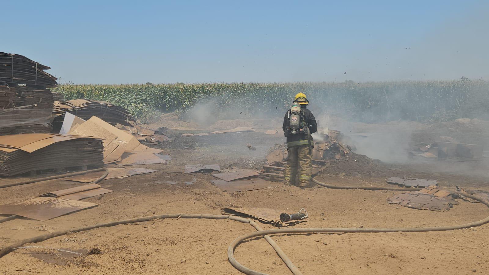 Un incendio que generó varias columnas de humo negro se registró durante la mañana de este domingo en un almacén de láminas de cartón de Aguaruto, al poniente de Culiacán, el cual dejó varios daños materiales, pero ningún lesionado.