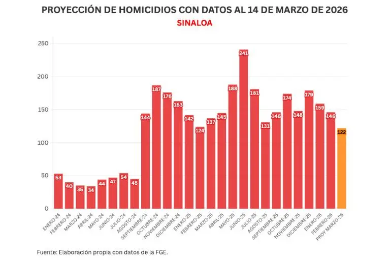 Con estos datos, marzo se proyecta para cerrar con 122 homicidios.