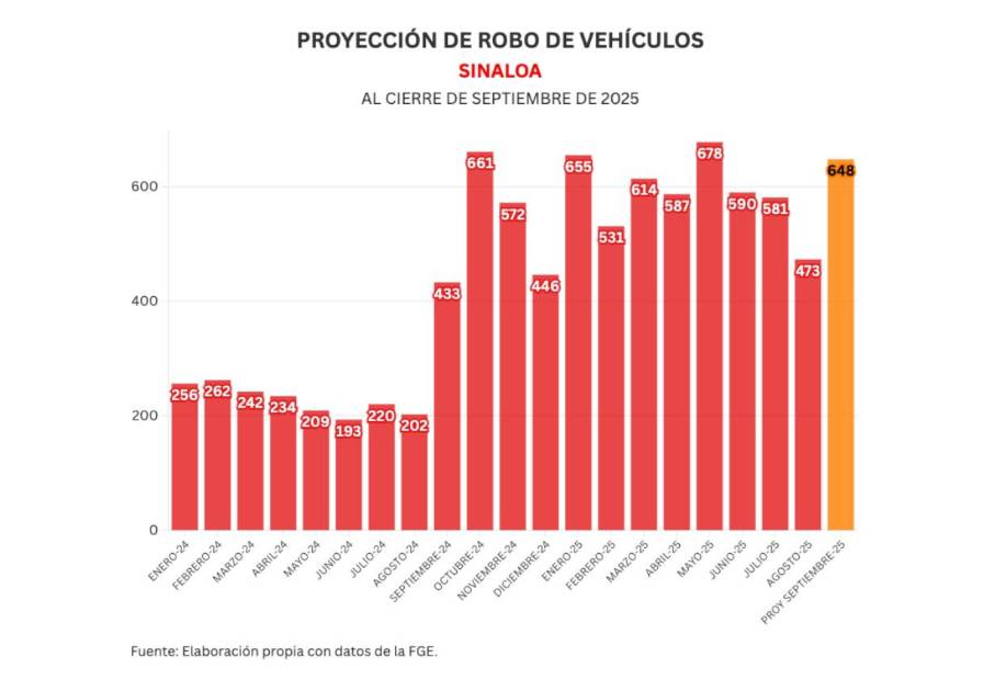 En robo de vehículo, en septiembre se han registrado 108 denuncias por ese delito según datos del Secretariado Ejecutivo de Sinaloa, para un promedio de 21.6 diarios.