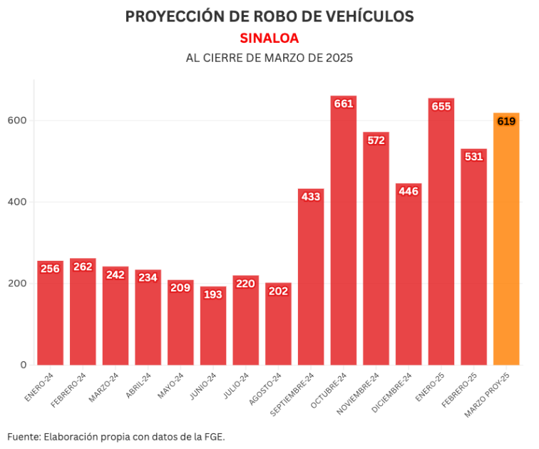 En robo de vehículo, en marzo van 439 denuncias por ese delito según datos del Secretariado Ejecutivo de Sinaloa, para un promedio de 20 diarios.