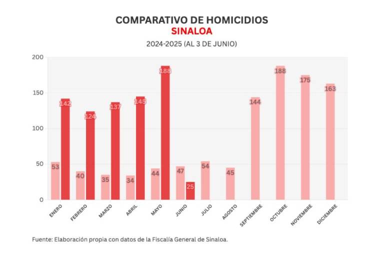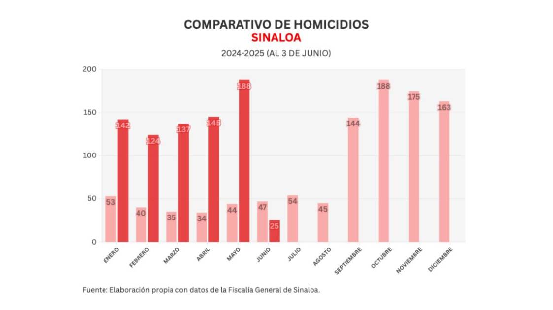 También Noroeste lleva un conteo mensual de acuerdo a lo registrado por el Secretariado Ejecutivo del Sistema Nacional de Seguridad Pública (SESNSP), en lo que va de junio se han registrado 25 homicidios para un promedio de 8.3 diarios.