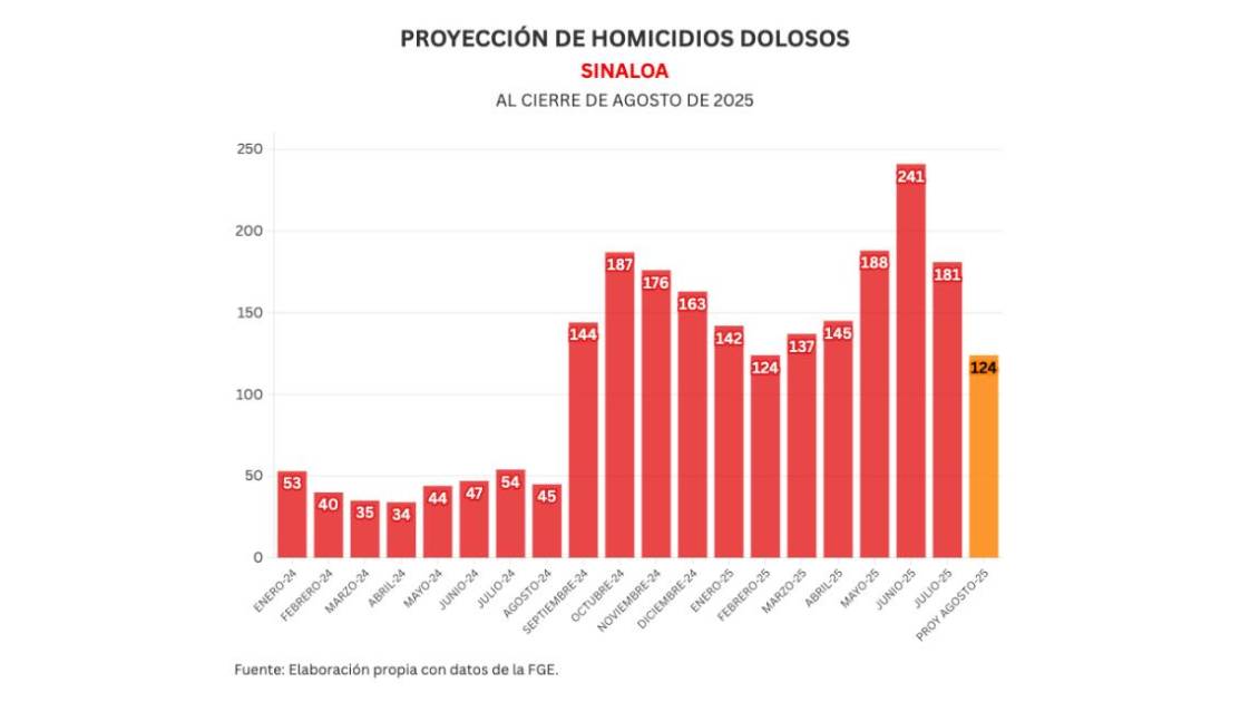 Con estos datos, la proyección de asesinatos para agosto de 2025 es de 124.